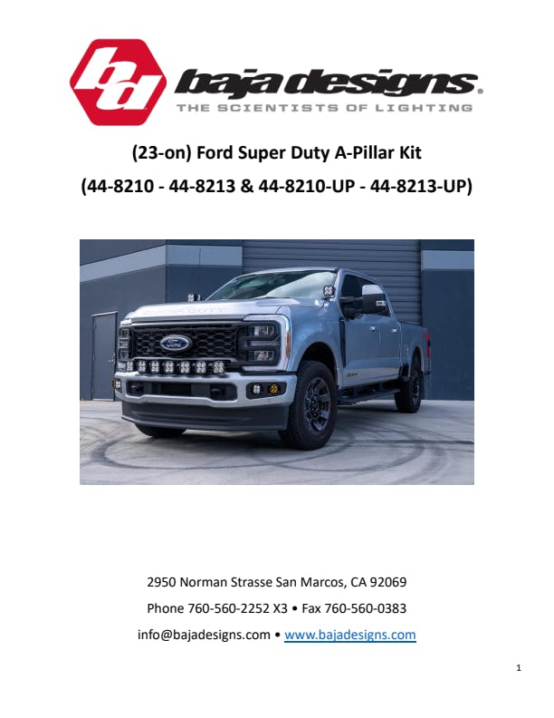 The Baja Designs XL Sport A-Pillar LED light kit for the 2023-on Ford F-250/350 Super Duty caters to off-road enthusiasts seeking heightened visibility while off-roading at night. This comprehensive two-light kit comprises of XL Sports with 3,162 raw lumens each, mounting brackets, an option of a toggle switch or upfitter wiring harness, and all essential components, ensuring a seamless installation process. A-Pillar LED Lights improve visibility, safety, and off-road capability offering enthusiasts additional illumination and expanded field of view that helps see hazards or obstacles while on the trail. Experience the assurance of our 30-day satisfaction guarantee and lifetime limited warranty, providing unparalleled protection for your investment.Kit Includes:(2x) XL Sport Driving Combo Clear(2x) Mounting brackets(1x) Toggle switch on/off harness or upfitter wiring harnessAll necessary mounting hardwareSpecs (per light):Lumens: 3,16230W / 2.2A
