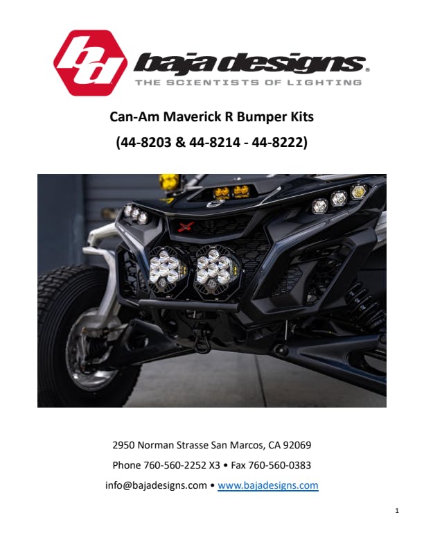 Baja Designs is proud to introduce a bolt-on push bar bumper Kit for the Can-Am Maverick R, designed to compliment the aggressive styling of the vehicle. Not only does it provide protection on the front of the Maverick R, but it is an exceptional mounting solution for the selection of Baja Designs lights, from the Squadron Sport, LP6 to a 10-inch OnX6+ light bar. The push-bar bumper is perfect for those who want a minimalist Baja inspired bumper while providing that extra layer of protection. Experience the assurance of our 30-day satisfaction guarantee and lifetime limited warranty, providing unparalleled protection for your kit.